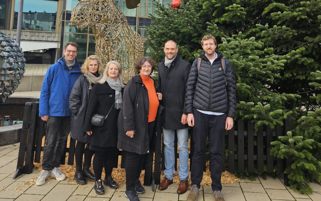 Bild v. l.n.r.: Geschäftsleitung der Diakonie im Kirchenkreis Düsseldorf-Mettmann: Tim Jacobs, Sabine Köhler, Sylvia Menke-Hollenberg, Dagmar Argow, Bastian Pallmeier und Moritz Klees.